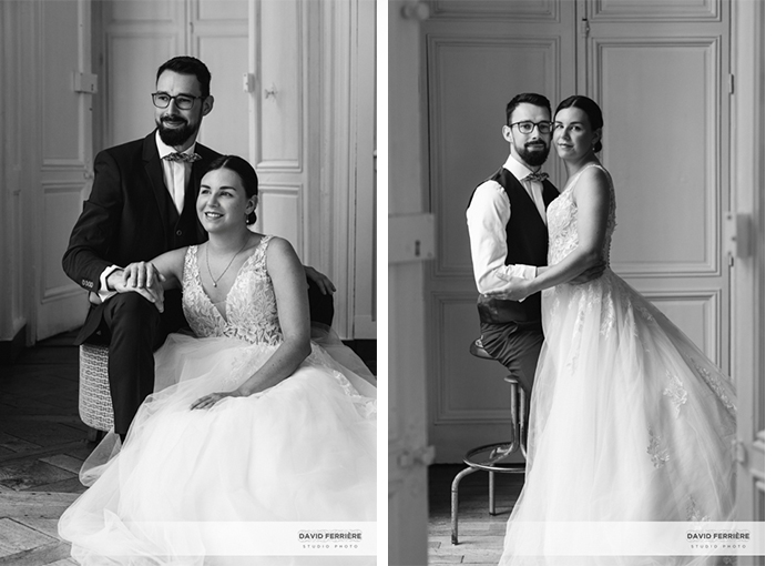 Ainsi, nous avons reçu nos jeunes mariés un beau matin de juin et grâce au parking privé du studio (est-ce un privilège ? une chance ? un atout ? je vous laisse juge), ils ont pu venir en toute décontraction et se changer sur place. Et nous voici lancés pour une heure de prise de vues en couleurs et en noir & blanc.