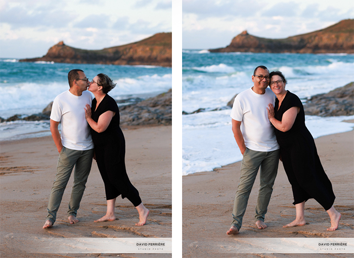 Ainsi et après une heure passée dans le cocon du studio photo rennais, nous nous retrouvons un soir entre Saint Malo et Cancale. Une lumière épatante (ou « sensass » c’est selon), deux tenues et la plage pour nous seuls : peut-on rêver mieux pour fêter une bel anniversaire ?